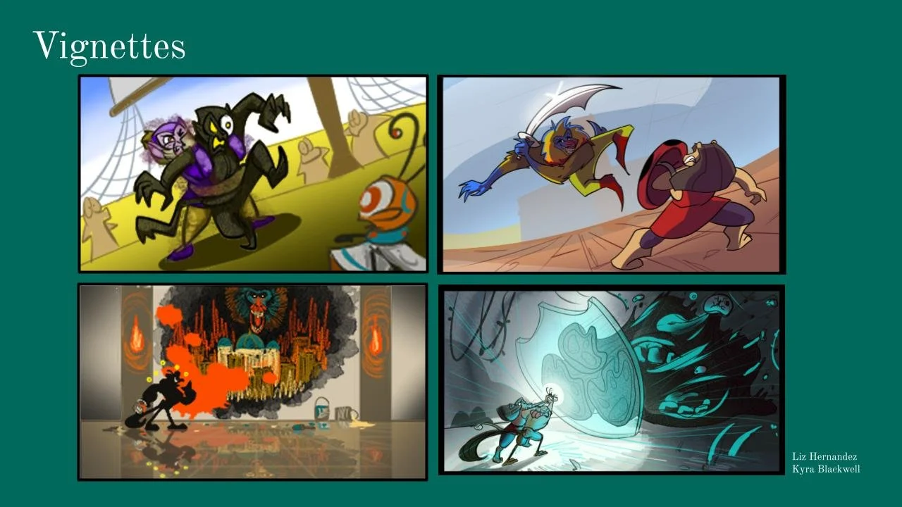 Led a vis-dev team of three to create a visual bible for a story idea of mine. Done through AAU’s Studio X.